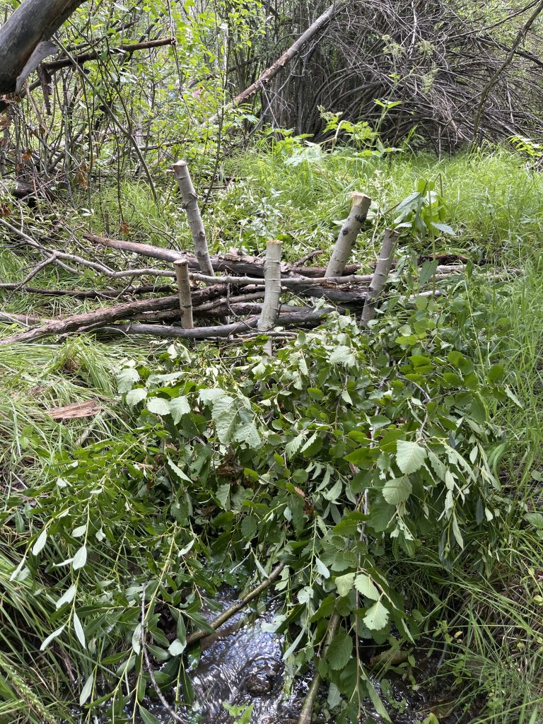 In 2025, BHWC and partners continued restoration in the Mount Haggin Wildlife Management Area to reduce erosion and improve watershed conditions. Crews built 93 natural structures by hand, including 68 in-stream check dams, 16 gully check dams, and 9 gully slash filters. The structures were constructed from local materials such as willow, aspen, juniper, rock, and woody debris gathered onsite. Work in Joyner Gulch, Muddy Gulch, and California Creek slowed runoff, captured sediment, and supported vegetation recovery across the treated slopes.