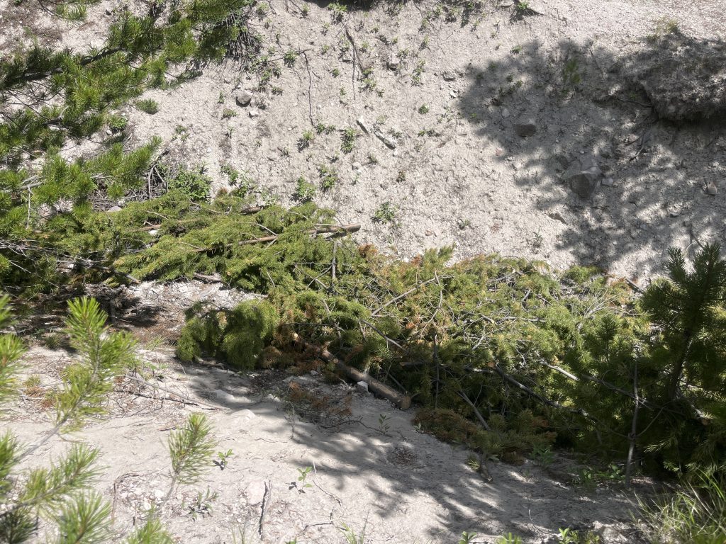The Mt. Haggin Uplands Injured Area was denuded by aerial emissions from the famous Anaconda Smelter, which deposited heavy metals (Copper, Arsenic, Cadmium, Lead, Zinc) on nearby mountains. These emissions, together with intensive logging to fuel the smelters, removed a vast majority of the vegetation in the area.  Areas where water collected over the years have rebounded on their own, but other areas remained bare after 100 years.